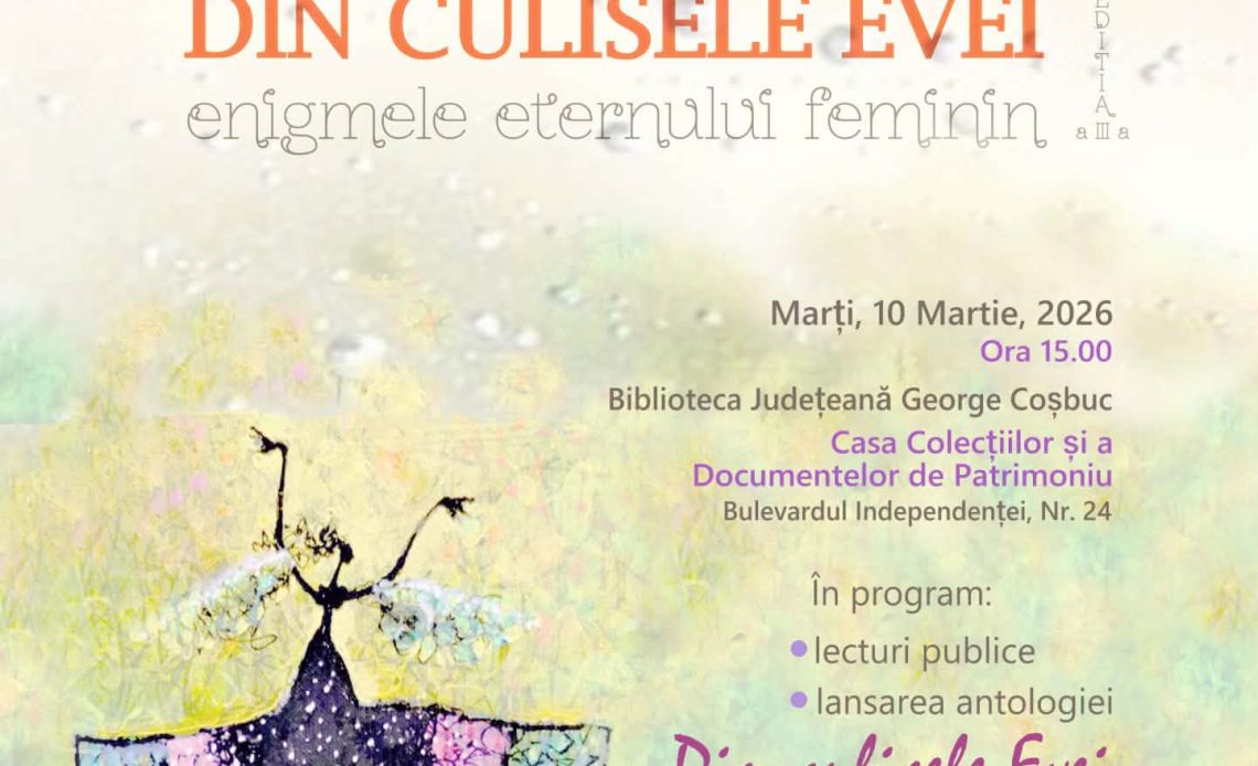 Cu această ocazie se va lansa antologia „Din culisele Evei”, scoasă sub tipar la Editura Galaxia Gutenberg.