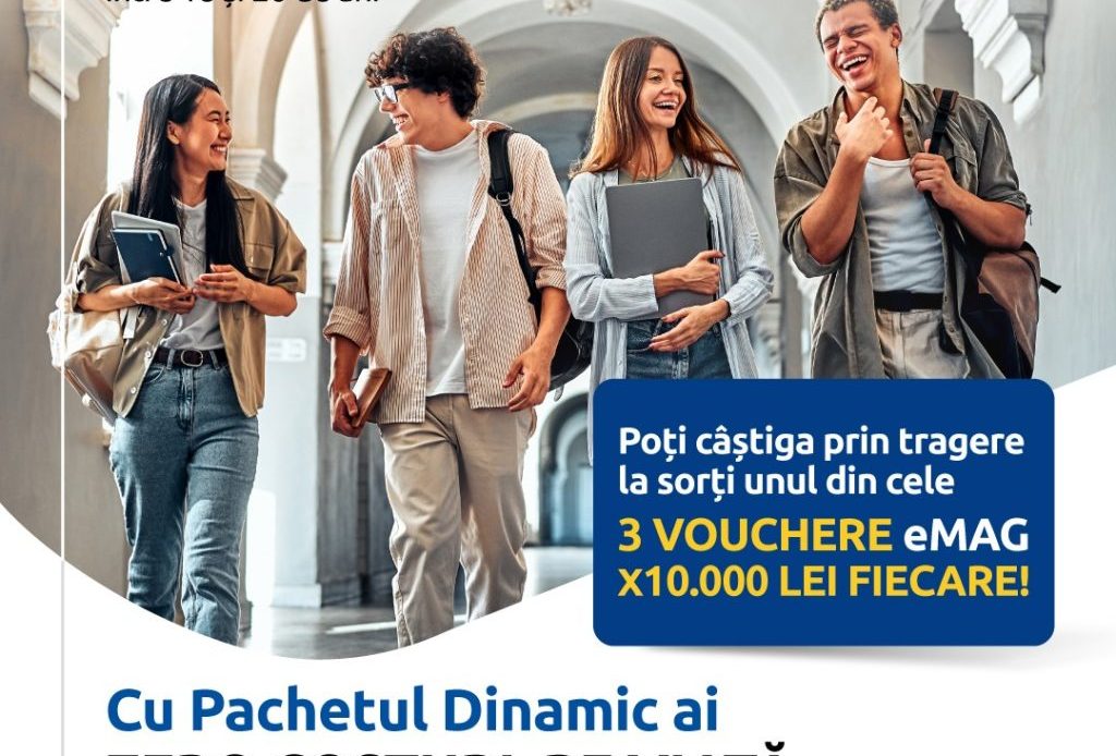 Studenții care achiziționează Pachetul Dinamic sunt înscriși automat în tragerea la sorți pentru unul dintre cele trei vouchere eMag, în valoare de 10.000 de lei fiecare, oferite ca premii în cadrul campaniei.