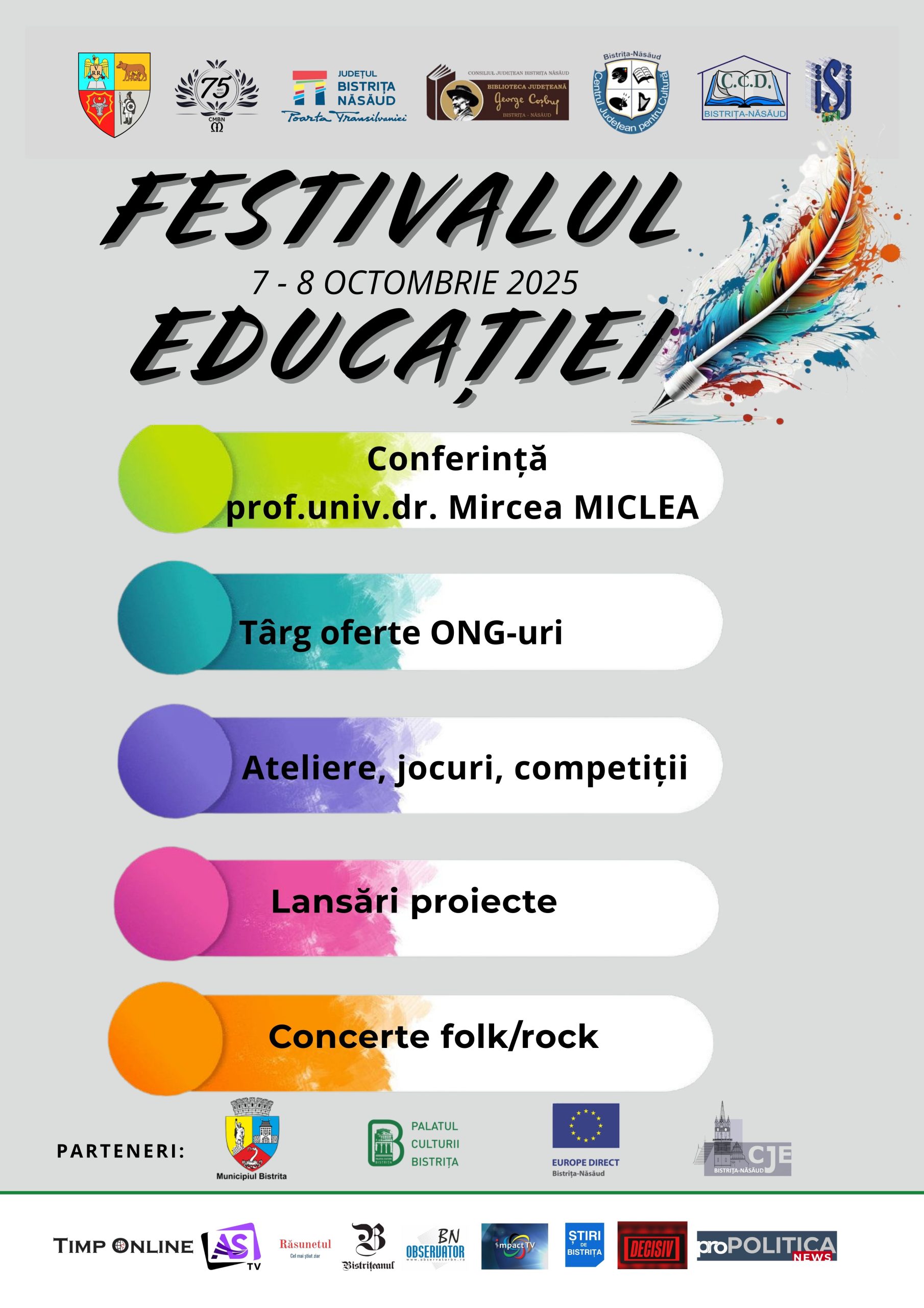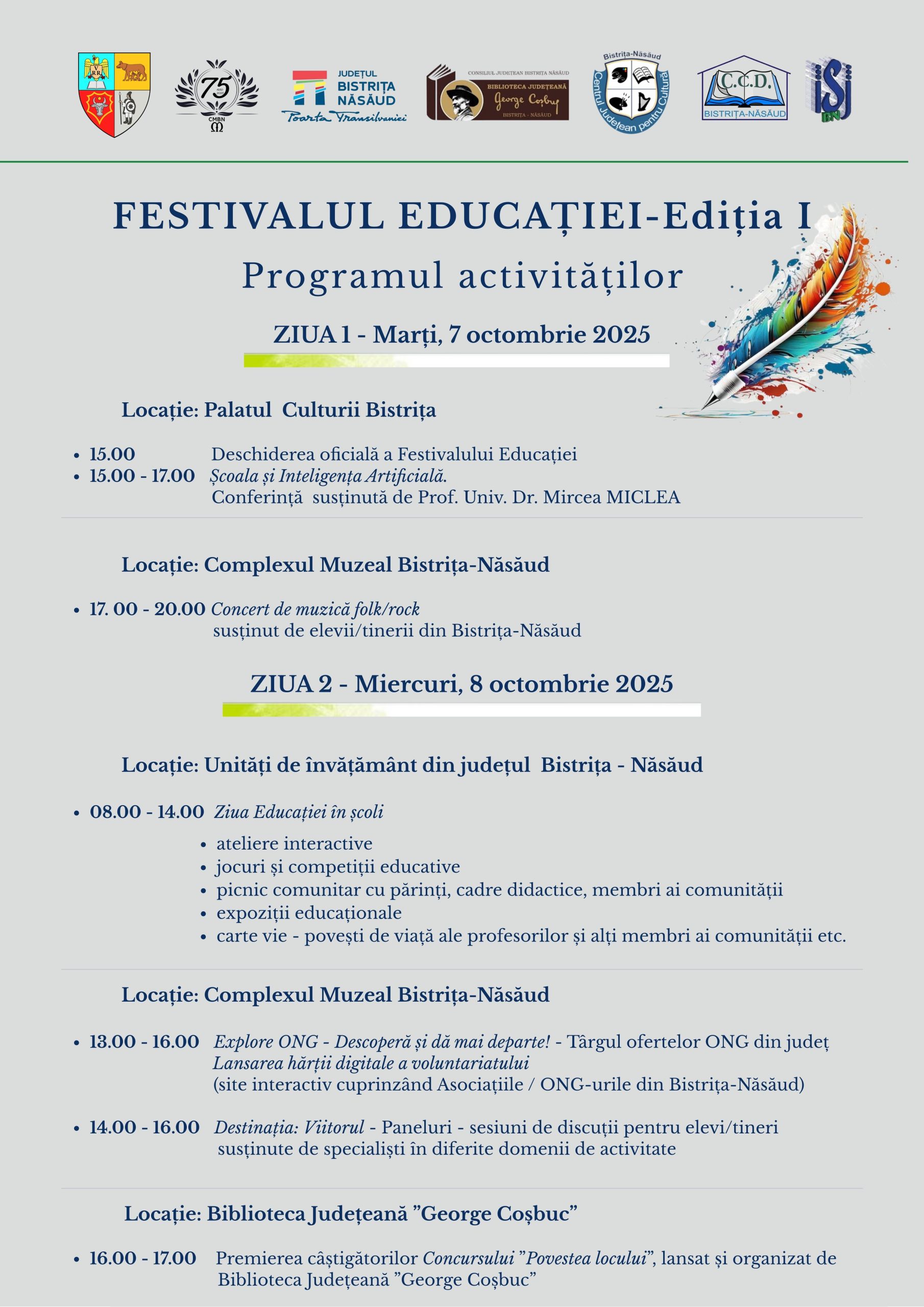 Bistrița găzduiește, în perioada 7–8 octombrie 2025, prima ediție a Festivalului Educației, un eveniment dedicat școlii, inovației și comunității.