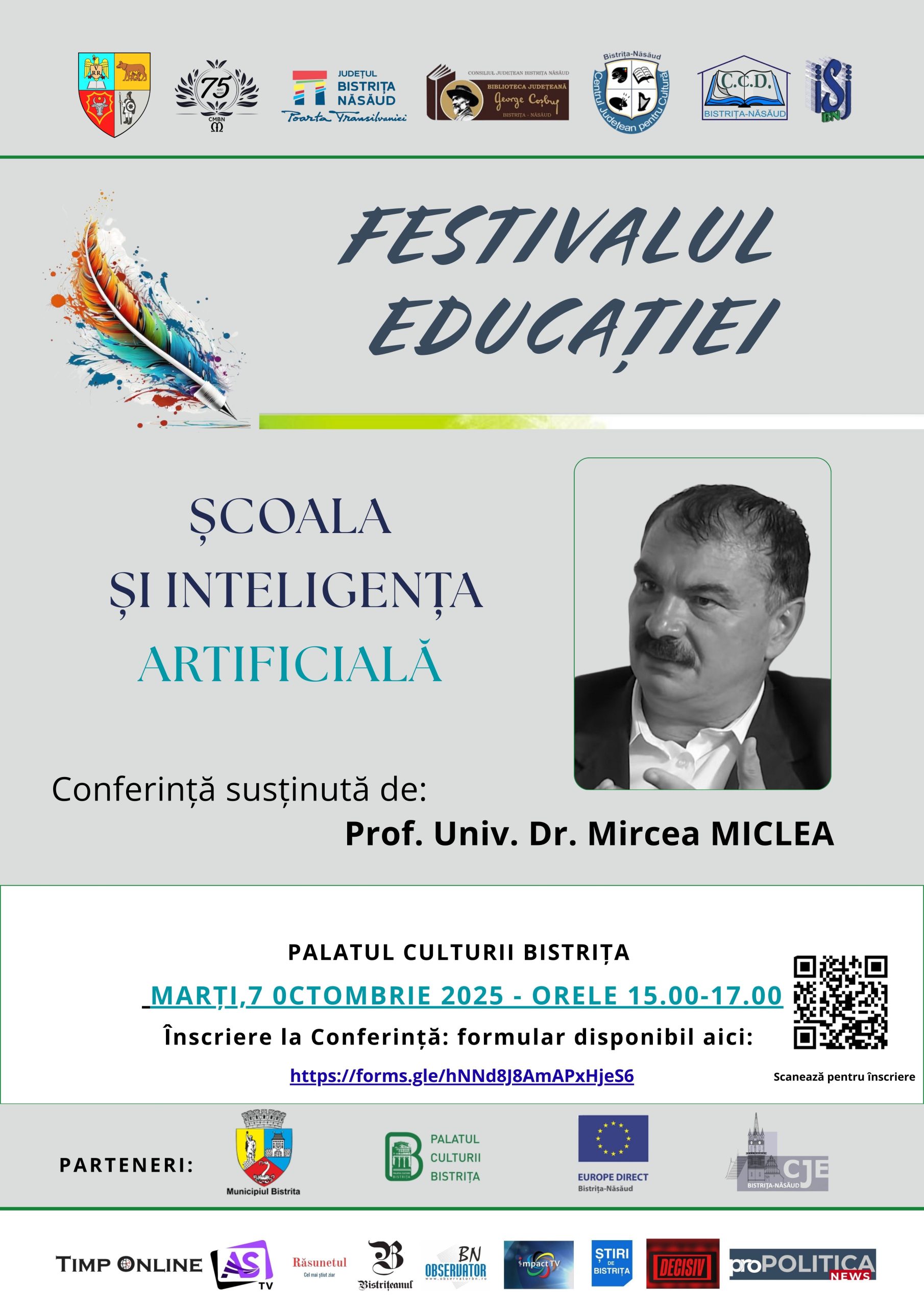 • Conferința „Școala și Inteligența Artificială” susținută de prof. univ. dr. Mircea Miclea (Palatul Culturii Bistrița,7 octombrie);