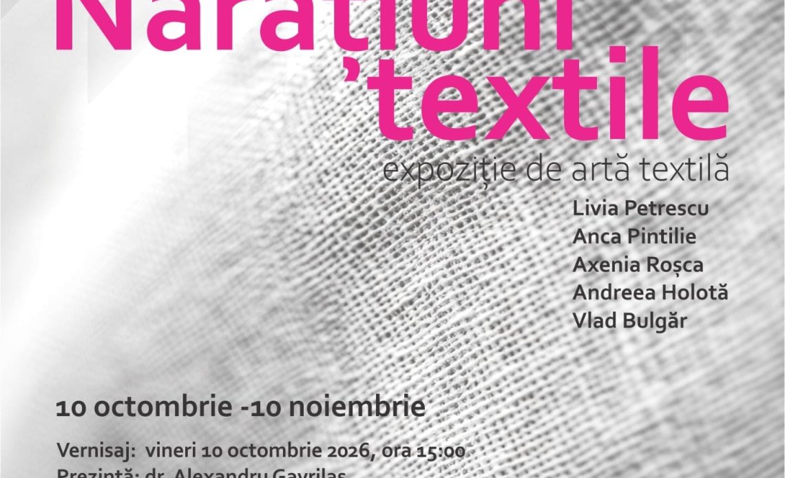 Complexul Muzeal Bistrița-Năsăud are plăcerea de a vă invita la vernisajul expoziției de artă textilă “𝗡𝗮𝗿𝗮𝘁̦𝗶𝘂𝗻𝗶 𝘁𝗲𝘅𝘁𝗶𝗹𝗲”, care va avea loc 𝘃𝗶𝗻𝗲𝗿𝗶, 𝟭𝟬 𝗼𝗰𝘁𝗼𝗺𝗯𝗿𝗶𝗲 𝟮𝟬𝟮𝟱, 𝗼𝗿𝗮 𝟭𝟱:𝟬𝟬, la sediul muzeului din Bistrița.