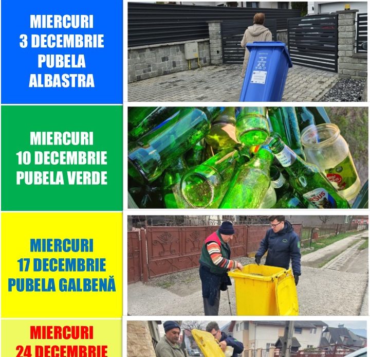Vezi programul de colectare a deșeurilor reciclabile în municipiul Bistrița și localitățile componente pentru luna DECEMBRIE 2025: