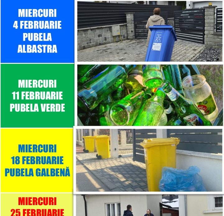 FEBRUARIE 2026 are următorul program de colectare a deșeurilor reciclabile pentru Municipiul Bistrița și localitățile componente: