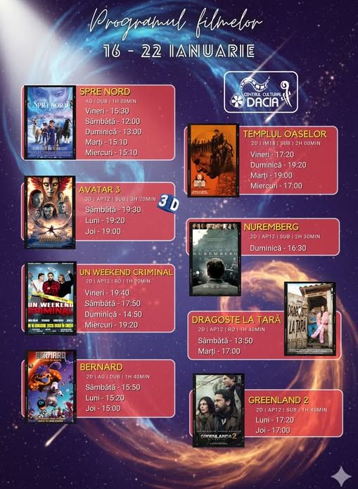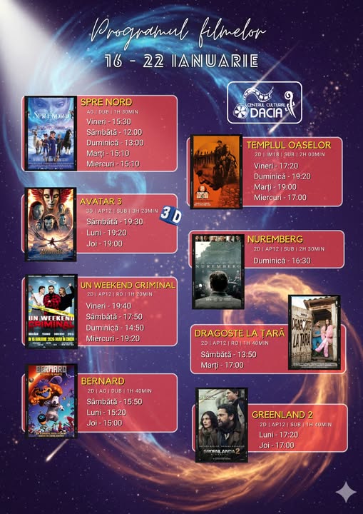 Programul filmelor din perioada 16 – 22 Ianuarie Bilete și detalii — www.cinemadacia.ro Abonare la newsletter: Trimite Share