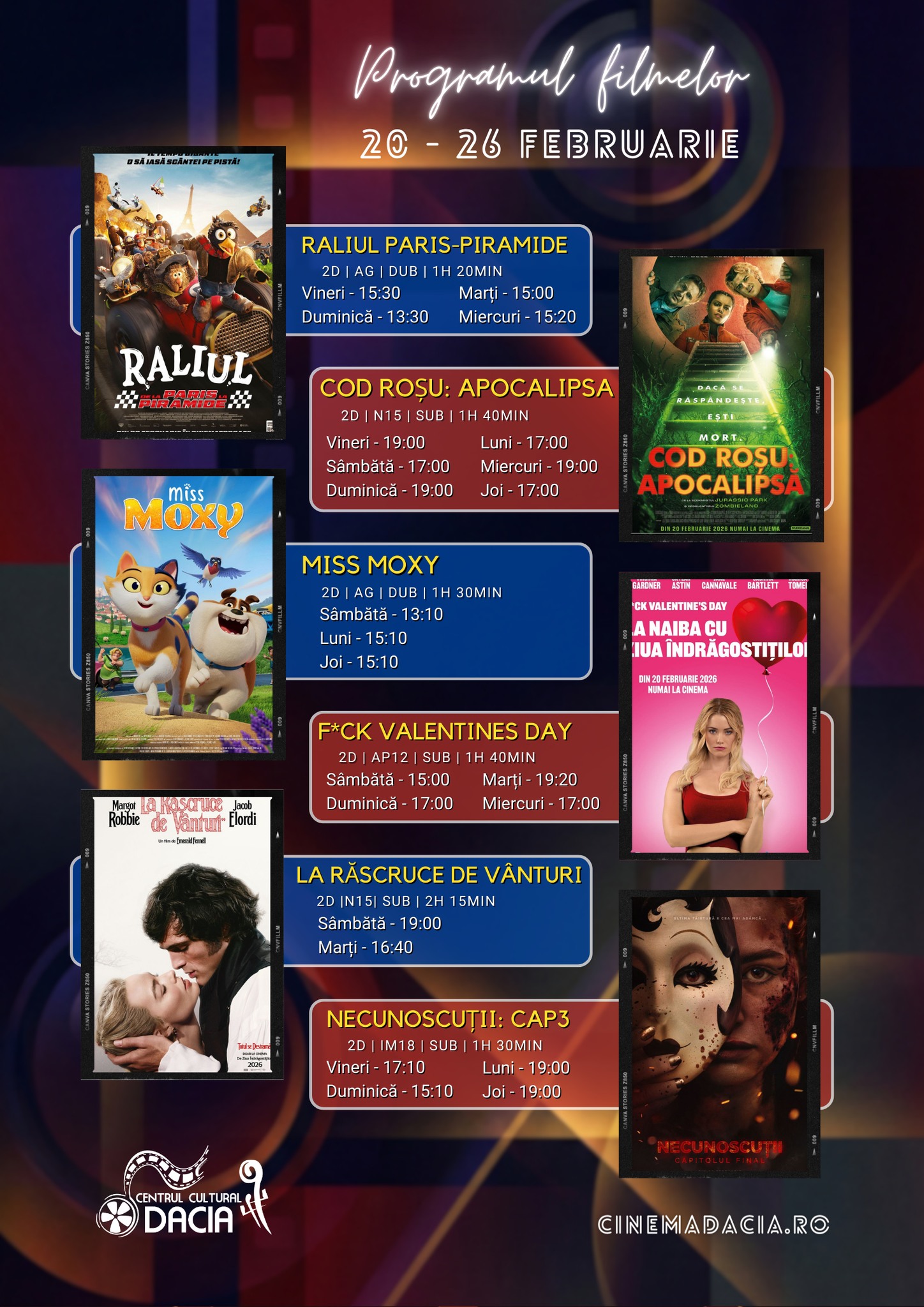 Programul filmelor din perioada 20-26 februarie Bilete și mai multe detalii — www.cinemadacia.ro Abonare la newsletter: Trimite Share