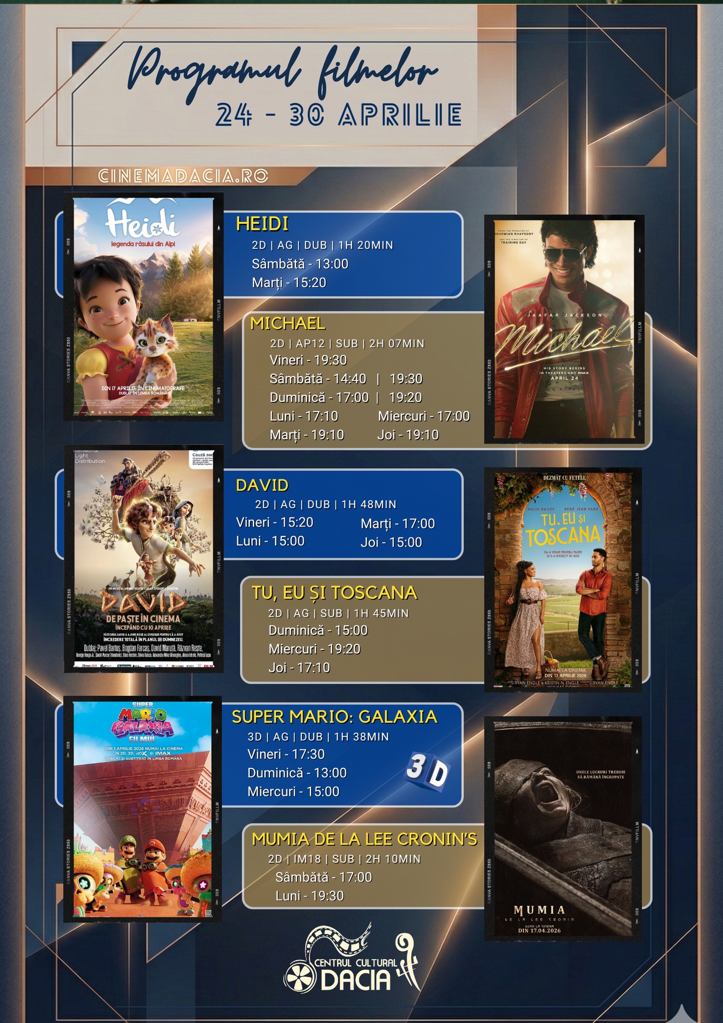 Programul filmelor din perioada 24 – 30 aprilie, la Cinema Dacia