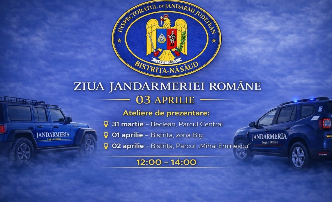 În data de 3 aprilie sărbătorim Ziua Jandarmeriei Române. Cu acest prilej, în județul Bistrița-Năsăud vor fi organizate o serie de activități dedicate publicului larg, menite să marcheze împlinirea a 176 de ani de la înființare.