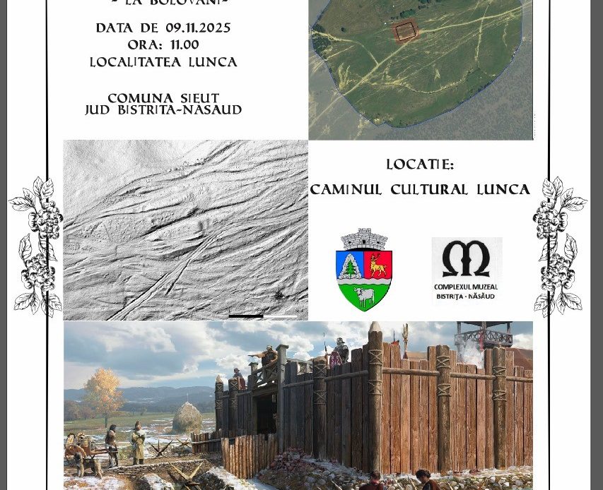 Complexul Muzeal Bistrita-Nasaud, în parteneriat cu Primăria comunei Șieuț, organizează duminică, 9 noiembrie 2025, începând cu ora 11:00, la Căminul Cultural din localitatea Lunca (comuna Șieuț, județul Bistrița-Năsăud), evenimentul „Ziua Porților Deschise – șantierul arheologic Lunca – La Bolovani”.